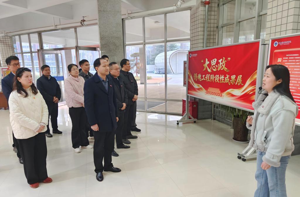 为深入落实立德树人根本任务,锚定教育强国建设目标,推动“大思政”铸魂工程走深走实,1月5日下午,党政办公室全体教职工赴勤业楼一楼大厅,实地参观“大思政”铸魂工程阶段性成果展。